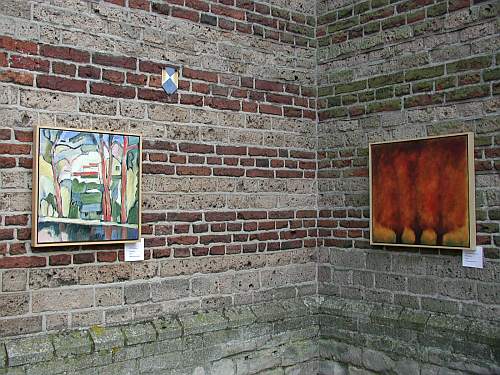Ook is haar eigen atelier een ontmoetingsplek geweest voor bezoekers. Je zou haar werk semi-abstrakt kunnen noemen.Soms zijn er herkenbare vormen aanwezig, terwijl andere werken alleen kleur en vorm zijn. Abstrakten in olie, acryl of gouache, en de genoemde “zwerfwerkjes” |